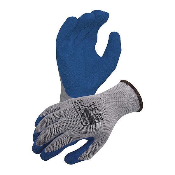 Coated Work Gloves, Latex, Crinkle, Palm, Grey/Blue, S 1 PR