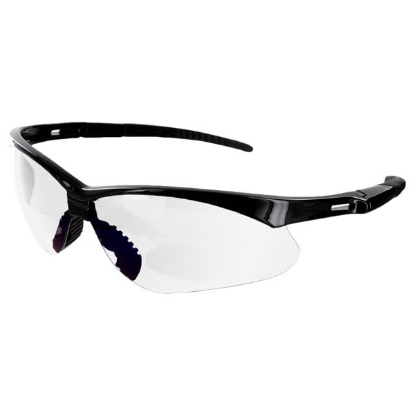 100% Polycarbonate Anti-Scratch Lenses, Z87.1 Compliant, 99.99% UV Protection, Soft Temple Inserts with Non-Slip Nosepiece, Black Frame, Clear Lenses
