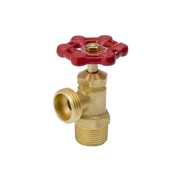 12, Brass, Male Pipe Thread Boiler Drain, 12 External Male Pipe Threads 12 Internal Solder Connection, 34 Hose Thread Outlet, Cast Iron Handle, Pipe Threads Comply With ANSI B1201, Hose Threads Comply With ANSI B1207