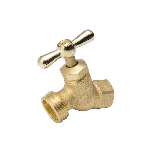 12, Brass, Straight No Kink Hose Bibb, 12 Female Pipe Threads, For Use With Water Or Oil, Neoprene Seal Washer, 34 Hose Thread Outlet, Large Flow, Pipe Threads Comply With ANSI B1201, Hose Threads Comply With ANSI B 1207