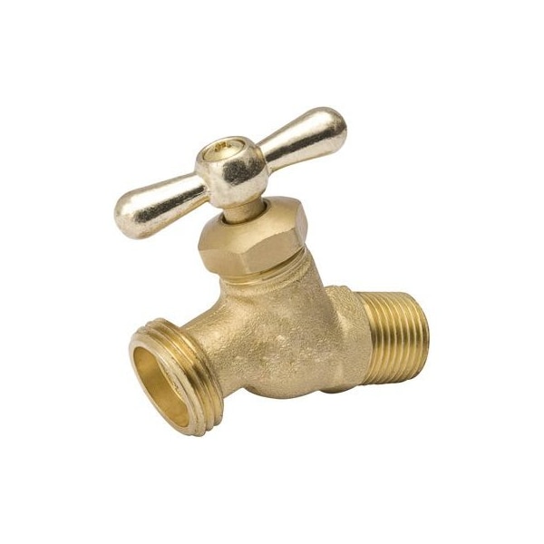 12, Brass, Straight No Kink Hose Bibb, 12 External Male Pipe Threads 12 Internal Solder Connection, For Use With Water Or Oil, Neoprene Seal Washer, 34 Hose Thread Outlet, Large Flow, Pipe Threads Comply With ANSI B1201, Hose Threads Comply With ANSI B 1207