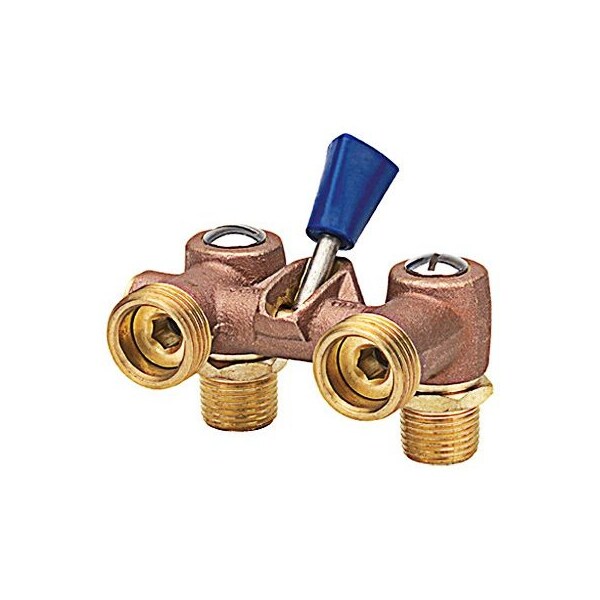 12, Washing Machine Shut Off Valve, Single Lever Shut Off Control, 12 Iron Pipe Threaded Connection, Hot Cold, 34 Hose Thread Outlets