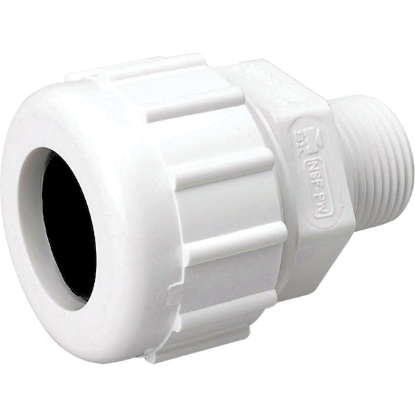 This B&K PVC Compression Union Adapter is designed to adapt PVC plain-end pipe to standard female pipe threads in cold-water applications. The compression end creates a seal that wont pull apart and easily connects to PVC pipe without glue. These fittings are highly resilient with high-tensile and high-impact strength and are designed for cold-water use.