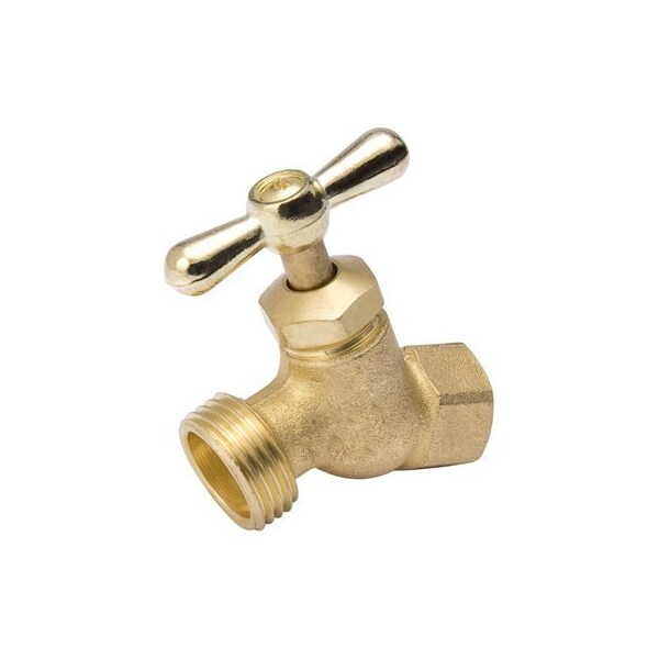 34, Brass, Straight No Kink Hose Bibb, 34 Female Pipe Threads, For Use With Water Or Oil, Neoprene Seal Washer, 34 Hose Thread Outlet, Large Flow, Pipe Threads Comply With ANSI B1201, Hose Threads Comply With ANSI B 1207