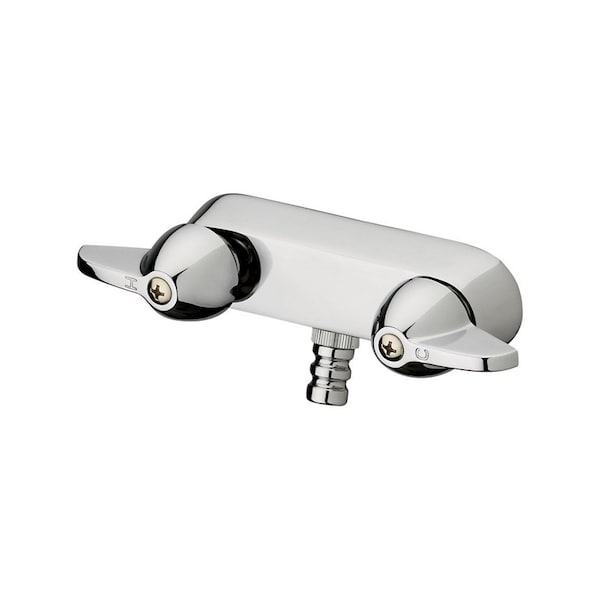 The Homewerks Worldwide 2-handle wall-mount tub faucet in chrome features durable brass construction to help provide long-lasting use. The separate lever handles for hot and cold water allow you to conveniently adjust the water temperature and volume. Your new wall-mount bath faucet is designed for years of trouble-free performance. Keep it looking new by cleaning it periodically with a soft cloth.