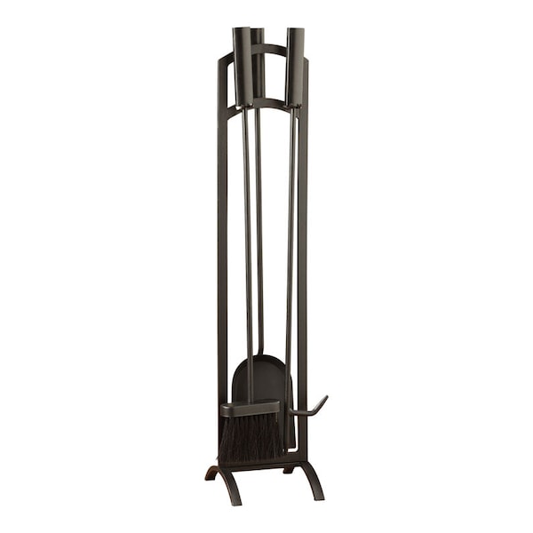 The Panacea 4-piece basic fireplace tool set maintains your fireplace in style. Steel construction and black powder coat finish for looks and durability.