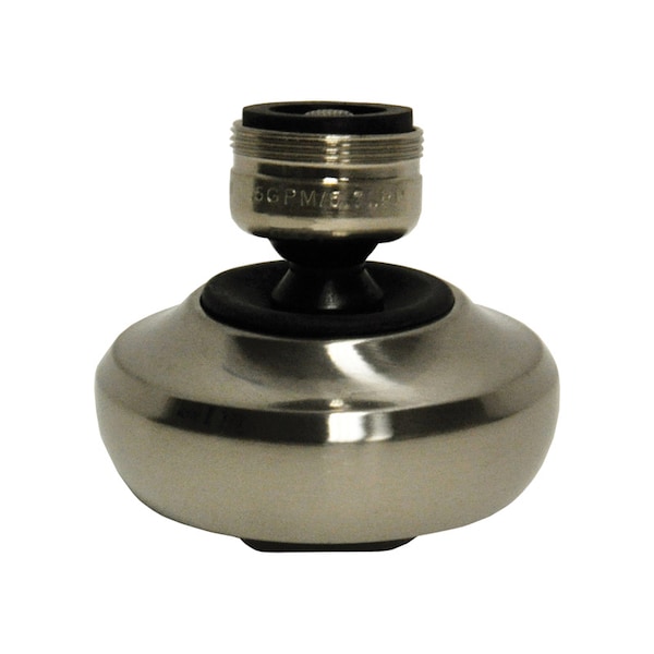This 1.5 GPM Transitional Swivel Sprayrator has dual threads 15/16 in.-27M or 55/64 in.-27F. It features such as cyclone technology which reduces water consumption without sacrificing water pressure. It has a 360 degree motion sprayrator with 2 spray patterns; stream and aerated wide spray that works like a mini side spray. This faucet sprayrator is watersense certified and can save you up to 30% water consumption.