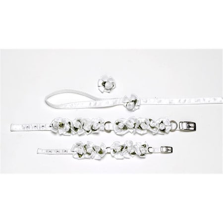 Ribbon Dog Collar Leash Set Wedding Petal Flower Rosettes with Pearls