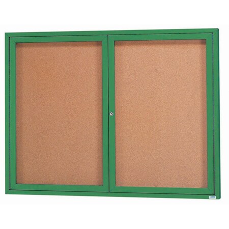 Enclosed Natural Pebble Grain Cork Bulletin Board w/ Green Powder Coated Al Frame, 48''Hx60''W
