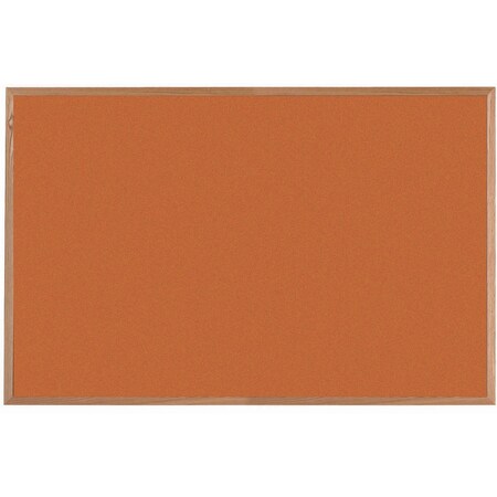 VIC Cork Bulletin Board, Red Oak Frame, Clear Lacquer Finish, Poppy Seed Dark Gray 24''Hx36''W
