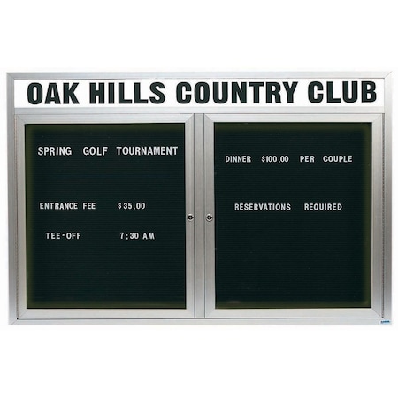 Illuminated Outdoor Enclosed Bulletin Board w/ Al Frame Header, Powder Coated Black, 48''Hx72''W