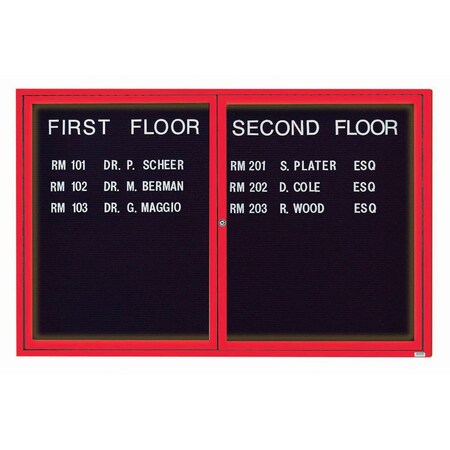 Illuminated Enclosed Letter Board Directory w/ Powder Coated Red Al Frame, 48''Hx72''W 2 Doors