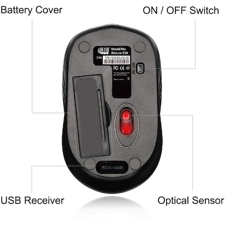 Adesso Antimicrobial Rf 2.4Ghz Wireless Optical Mouse w/ Metal Scroll