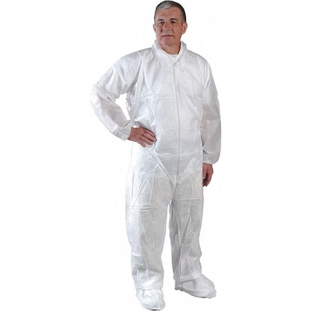 Disposable Coverallss, XL, AlphaGuard, Elastic Wrist, Elastic Ankle, Serged Seam, White, 25 PK