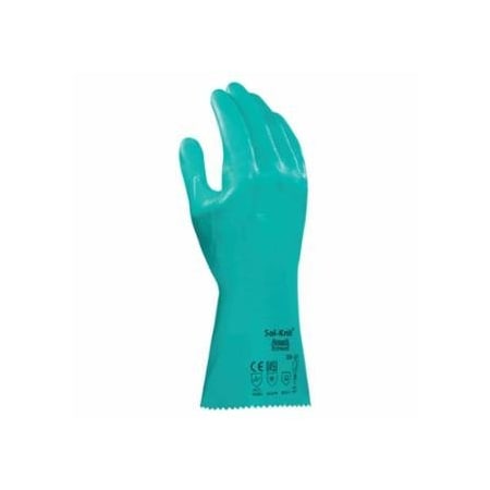 39-124 14 in Reinforced Nitrile Gloves, Gauntlet Cuff, Interlock Knit Cotton Liner, Size 9, 12PK