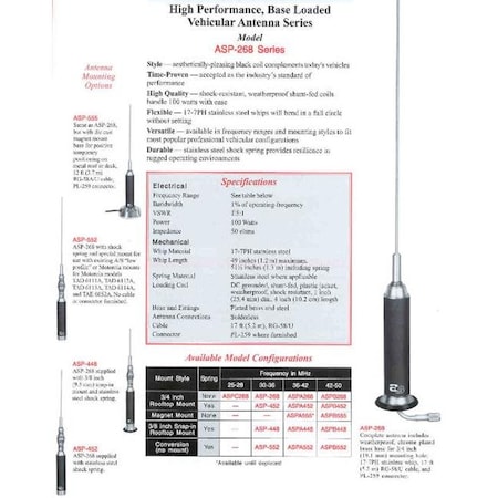 Antenna Specialist ASPA452 36-42 Mhz .75 in. Roof Mount with Spring Cable Connector