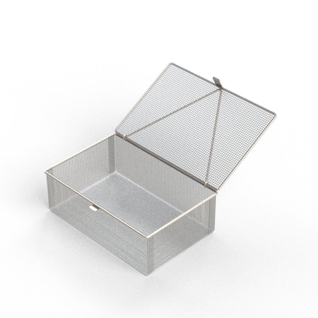 Light Duty Basket: 10Lx6Wx4H, 304 SS, Hinged Lid with Thumb Clasp, No Handles, Mesh: 2 x .063