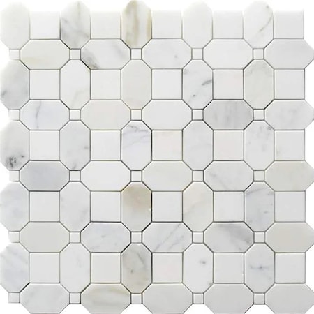 Serena 12x12 White Gray Calacatta Gold, Thassos Mosaic octagon & dot Wall and Floor Tile, 5PK