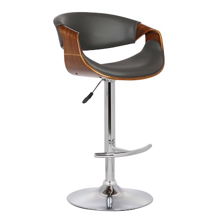 Butterfly Adjustable Height Swivel Gray Faux Leather and Walnut Wood Bar Stool with Chrome Base