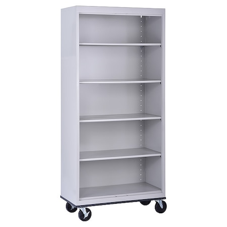 Mobile Bookcase, 5 Shelf, Dove Gray, 78x36