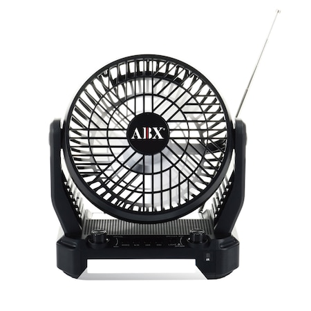 3-Speed Portable Solar-Rechargeable Fan W/ Built-in Bluetooth Speaker and Torch Light, Blk,