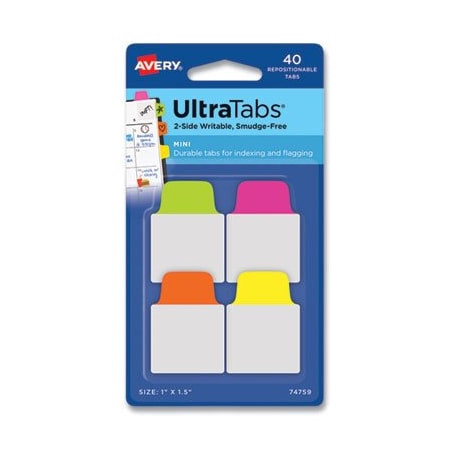 Avery, ULTRA TABS REPOSITIONABLE MINI TABS, 1/5-CUT TABS, ASSORTED NEON, 1in WIDE, 40PK