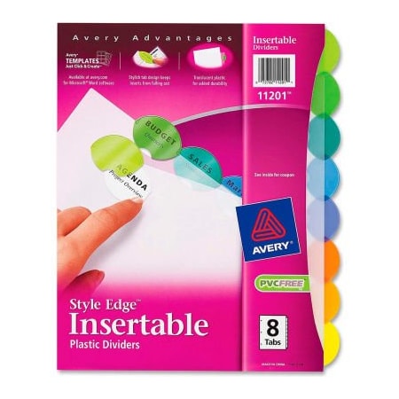 Avery Style Edge Clear Plastic Insertable Divider, 8.5"x11", 8 Tabs, White/Multicolor