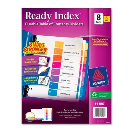 Avery Ready Index T.O.C. Reference Divider, 1 to 8, 8.5"x11", 8 Tabs, 6 Sets, White/Multi