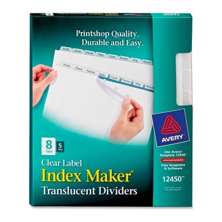 Avery Index Maker Clear Label Divider, Punched, 8.5"x11", 8 Tabs, 25 Sets, White/White
