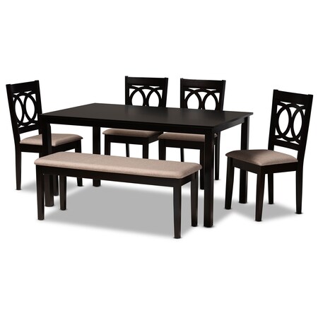 Glenda Mid-Century Modern Greyish Beige Fabric and Walnut Brown Finished Wood 7-Piece Dining Set