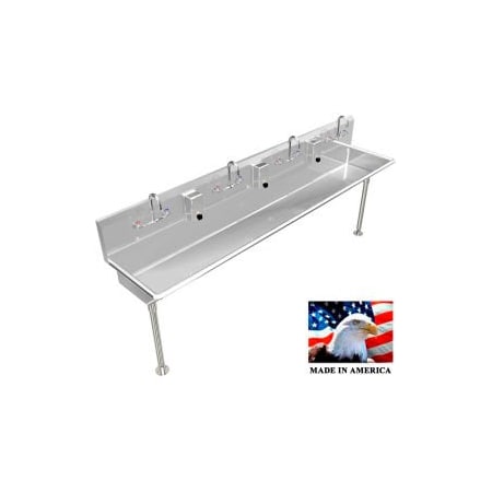 BSM Inc. Stainless Steel Sink, 4 User w/Manual Faucets, Straight Legs 80" L X 20" W X 8" D