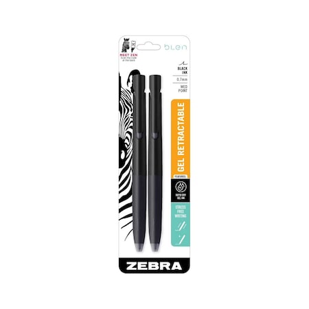Retractable Gel Pen, 0.7 mm, Black, PK2