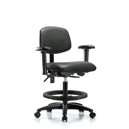 Vinyl Chair, High Bench, Med Back, Tilt, Foot Ring, Glides, Storm
