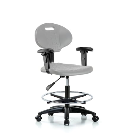 Poly Chair - Medium Bench Height with Chrome Foot Ring, Adjustable Arms, & Casters in Gray Poly