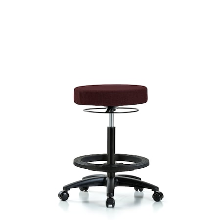 Rutledge Fab Stool without Back - High Bench Height with Black Foot Ring and Casters in Burgundy Fab