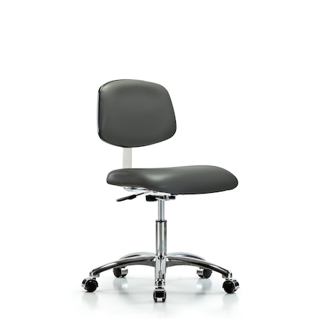 Poly Chair Chrome - Medium Bench Height with Seat Tilt, Chrome Foot Ring, & Casters in Gray Poly