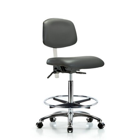 CL100CleanRoom Chair-Medium Bench Ht with Seat Tilt, Adj Arms, Chrome Foot Ring, &Casters in Gray Poly