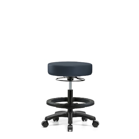 Vinyl Mini-Stool-Medium Bench Ht with Black Foot Ring & Casters in Imperial Blue Trailblazer Vinyl