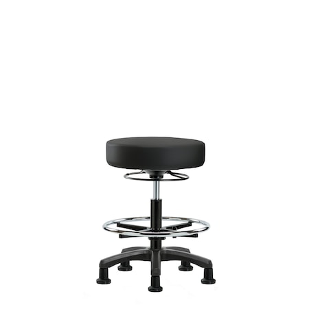 Vinyl Mini-Stool-Medium Bench Height with Chrome Foot Ring & Stat Glides in Black Trailblazer Vinyl