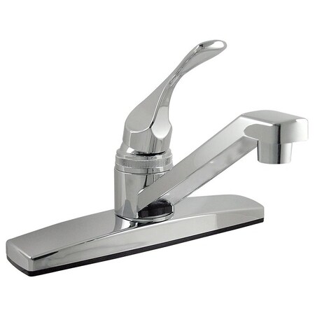Kitchen Faucet, 1.8 gpm, 2-Faucet Hole, Plastic, Chrome Plated, Deck Mounting, Lever Handle