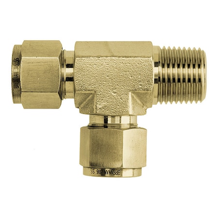 Tee, Brass, Tube1/2", Tube1/2", MNPT1/2"