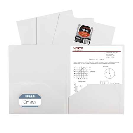 C-Line Products Two-Pocket Heavyweight Poly Portfolio Folder with Prongs, White, 25PK