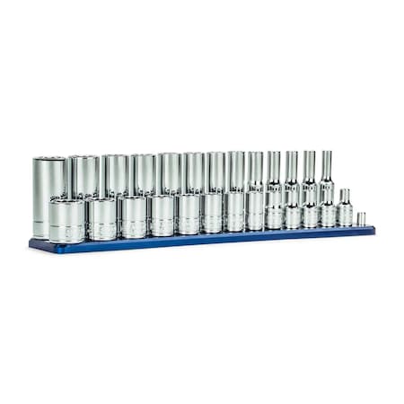 1/4in. Drive 12-Point Shallow Deep Socket Set, Metric, 4 15 mm, 26-Piece Billet Aluminum Socket Rail