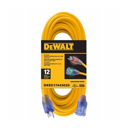 SJTW Extension Cord, 12 AWG, 12/3, 1 Outlets, Yellow, 25 ft