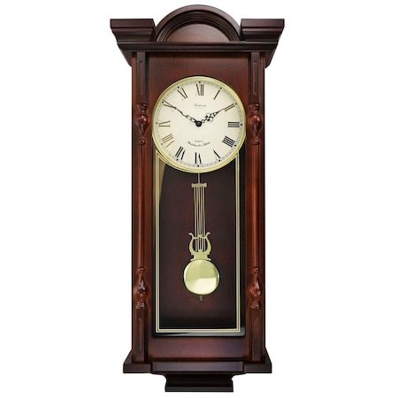 38 in. Clock Collection Grand Antique Chiming Wall Clock with Roman Numerals - Cherry Oak Finish