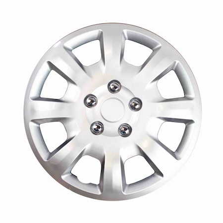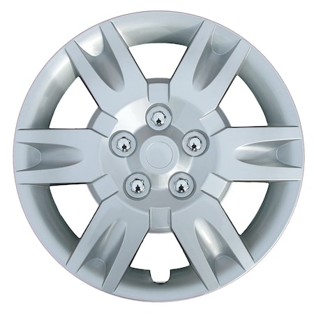 16", 5 Raised Dimpled Spoke, Chrome Plated, Plastic, Set Of 4, Compatible With Steel Wheels