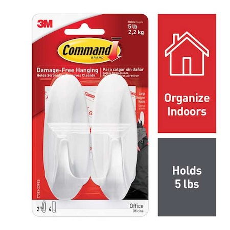 Hook, White, Plastic, 3 1/8 in D