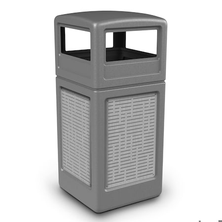 PolyTec Square Waste Container w/Dome Lid - Gray w/Pepper Stone Panels, 42-Gallon