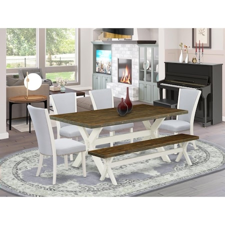6 Piece X-Style Amazing Dining Table Set - Linen White