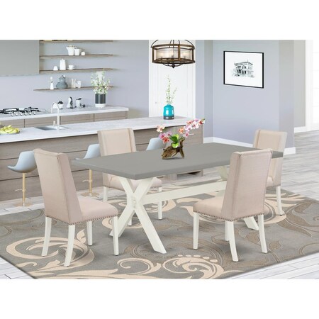 6 Piece X-Style Stylish Modern Dining Table Set - Linen White